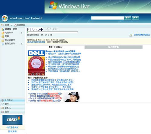 微软表示,新版Hotmail收件箱的存储空间仍为2G,未来将进一步扩容。