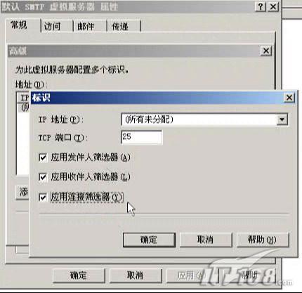 配置完毕收件人发件人规则以后,还需要在SMTP虚拟服务器上应用这些规则。