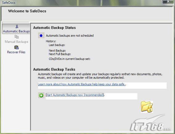 创建一个定位到DVD的手动备份操作,首先我们要在All Programs中,选择Administrative Tools,然后选择Backup,在动作页选择Backup Now,然后在Backup Now Options页面上选择Any backup target,选择所需备份的内容后,在Specify Target Type选择Local drives,下一步选择将磁盘映射到DVD介质上,最后在Summary页面上检查之前的配置,当点击完成后,系统就会开始处理备份的操作。整个备份的操作是可以自动分割在多张DVD光盘上进行的,所以不必担心备份容量的问题。