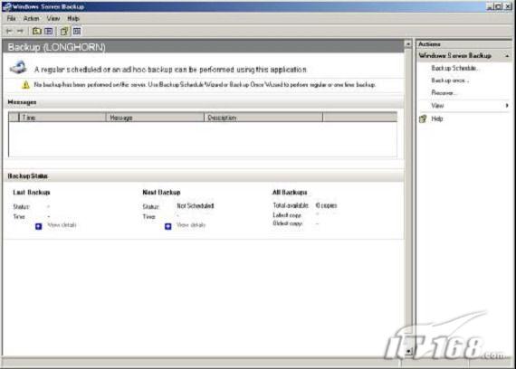在之前的文章中我们一起体验了Windows Server 2008( Longhorn Server )中的Server Core功能,今天我们要讨论的是大家非常熟悉的备份还原功能。