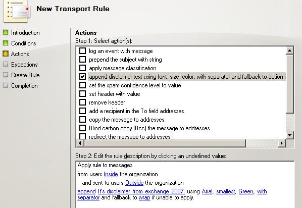 位置:Append(页脚);Prepend(页眉) 注:Exchange不检查是否已添加免责声明