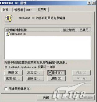 点击域控制器OU的属性――》组策略标签――》新建组策略――》输入组策略名――》编辑。如图3所示