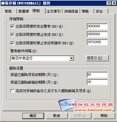 3. 邮箱存储的存储限制: