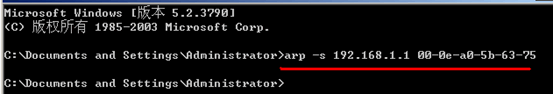 arp -s路由器LAN IP 路由器LAN MAC