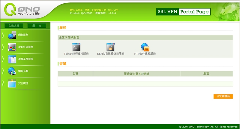 图一:Qno侠诺 SSL VPN客户端使用界面