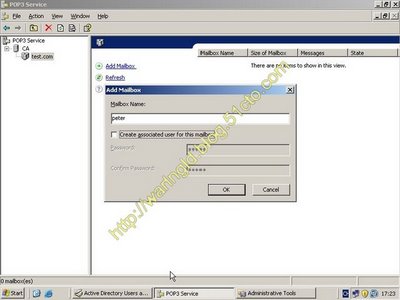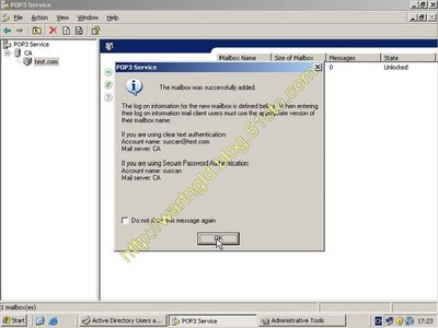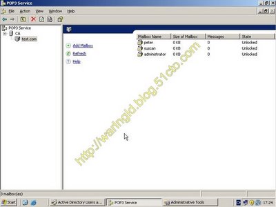 按实现邮件加密传输之一(http://www.5dmail.net/html/2008-1-25/200812593636.htm)的设置完成前期配置.本文将完成POP3账户的创建及测试用户证书的申请的工作.