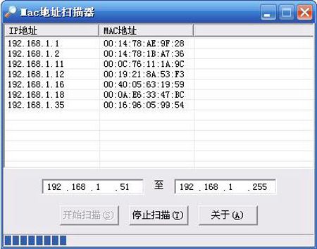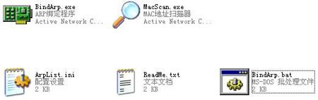 首先,双击图3中的“MacScan.exe”打开MAC地址扫描窗口。扫描完成后,会在当前目录下,自动生成和创建“BindArp.bat”批处理文件,同时也将扫描出的MAC和IP地址添加到ini文件“ArpList.ini”中,格式如下: