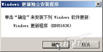 (2)在"Windows更新独立安装程序"页中,单击"确定"按钮,如图2所示。