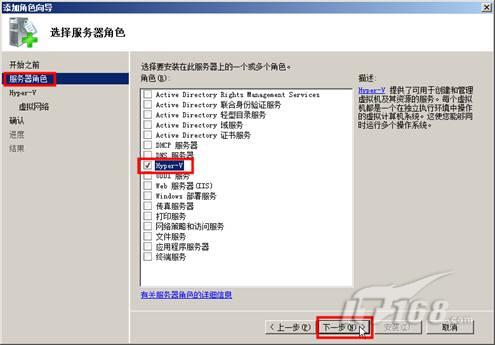 (2)在"Hyper-V"页中,单击"下一步"按钮,如图7所示。