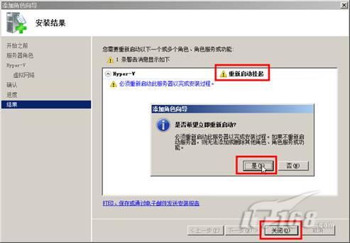 (5)计算机重新启动两次后,完成Hyper-V角色的添加,如图10所示。