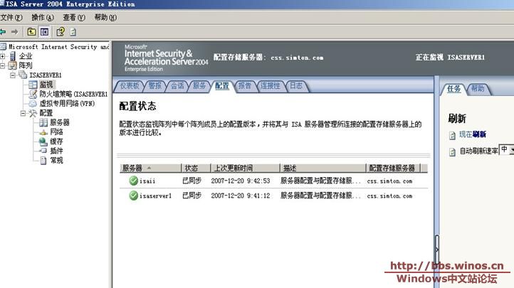 此时在控制台里能看到两台ISA服务器, 2台ISA已经和配置存储服务器同步