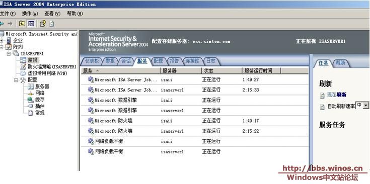 在ISA控制台里可以看到两台ISA共同为客户端提供上网服务