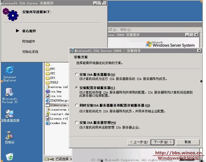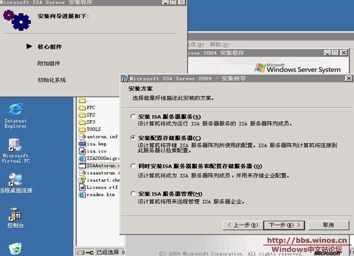 1.安装配置第一台配置存储服务器,然后安装第一台ISA服务器.