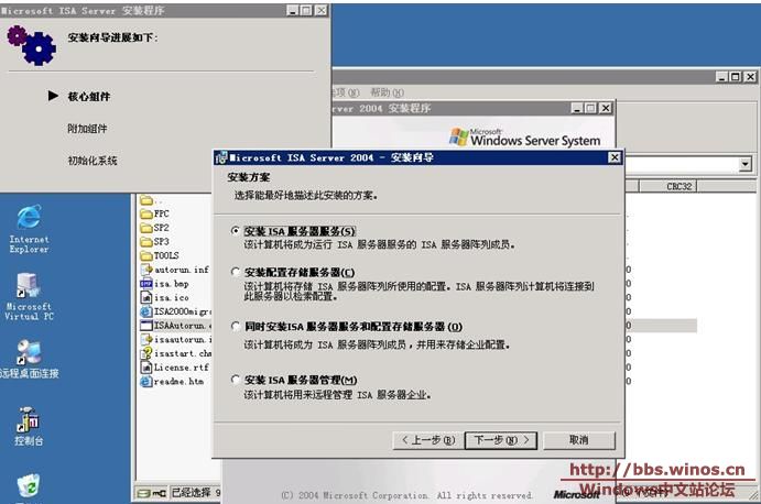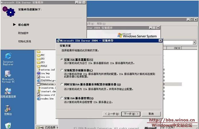 下一步 直至完成CSS1的安装 然后在ISA1上安装ISA服务。