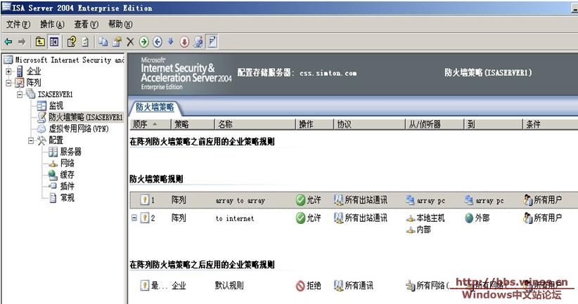 完成后在ISA控制台里建立阵列内完全允许策略以使第二台能顺利安装。