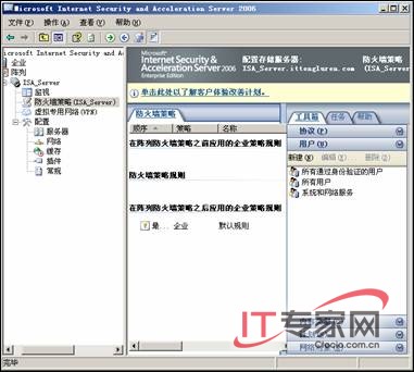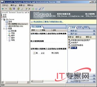 返回ISA控制台,在【工具箱】区域的【用户】中存在刚才创建的用户,如图所示。