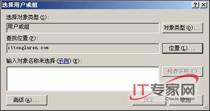 选择【Windows用户和组】以后,出现【选择用户或组】对话框,将【查找位置】指定为【ittongluren.com】,这样指定的用户是域用户,如图4所示。