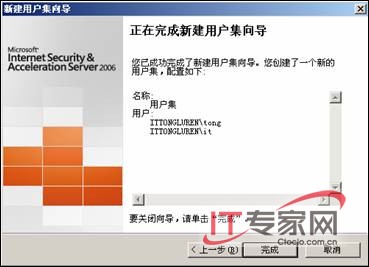 单击【下一步】按钮,出现【正在完成新建用户集向导】对话框,如图7所示,单击【完成】按钮即可结束用户元素的创建。