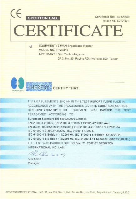 究竟消费者如何辨认产品是否具备安规认证?目前比较具代表性标准的国际安规认证包含美国FCC电子产品安全认证、欧盟的CE认证。这些认证机构会透过严格的测试,判定产品是否符合稳定性、兼容性、可靠性、无害、无干扰程度等标准,但由于这些测试与取得认证通常非常昂贵,因此国内部份厂家并未加以特别取得认证。然而,买到这类的产品的同时,消费者的安全就相对也会比较没有保障。Qno侠诺建议消费者选购产品时,须多加留意关于安规的标准认证,像Qno侠诺原厂的多WAN路由器,均具有FCC、CE认证,就是希望通过多重的安规认证,严格确保消费者使用的安全。