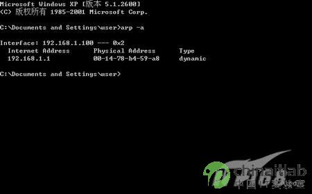 第二步:最近在网上比较流行ARP欺骗,也就是通过ARP欺骗数据包将自身伪装成网关地址,这样实现其他计算机无法找到正确的网关而无法上网的症状,笔者在员工计算机上运行arp -a命令来查看网关MAC地址和IP地址,结果发现返回的信息都是正确的。