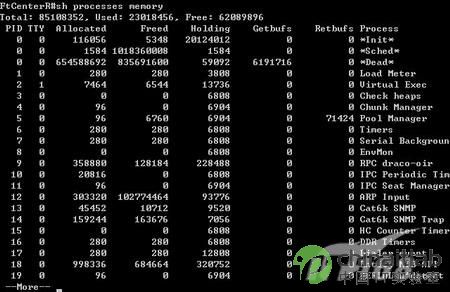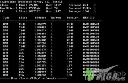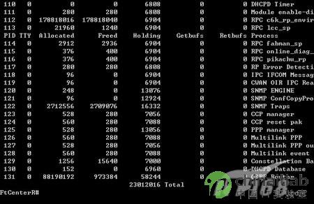 同样CISCO设备会根据当前131个进程给出详细的内存占用情况,每个进程对内存的使用情况也将一览无余。(如图10)