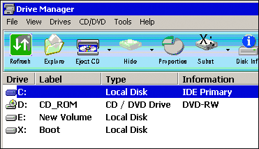 有多种工具可用于识别计算机中装入的目标驱动器。Bginfo.exe 位于 Sysinternals 工具目录下,它可以提供此信息,并将其放在桌面上的背景窗口中,以便您参考。Drive Manager 也可以识别计算机上的所有驱动器,包括目标硬盘驱动器和外部 USB 设备。图 1 显示了 Testbox1 的磁盘信息。引导驱动器是 X:\,目标硬盘驱动器是 C:\,外部 USB 驱动器是 F:\。