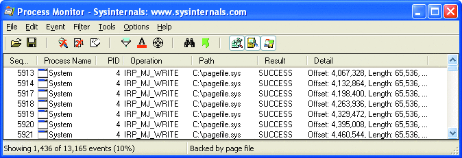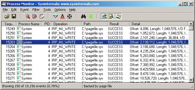 内存管理器还会尝试写出其他已修改页面(这些页面与将要写出到所拥有进程的地址空间中的页面相邻),并且会将分页文件放到已包含其他相邻页面的区域中。这种方法也可尽量减少碎片并提高性能,因为那些可能会最终写出到分页文件中的页面均已被写入。此外,它还减少了引入大量相邻进程页面所需的分页读取次数。查看侧栏“试验:查看大规模的磁盘 I/O 操作”了解有关内存管理器使用大规模的 I/O 方面的更多信息。