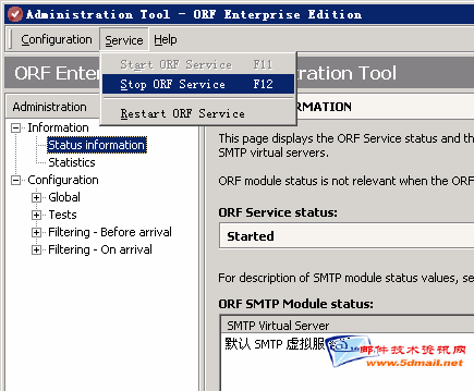 8.最后,如果你闭了工具,请一定记得将ORF的服务启用。以保证为你的邮件服务器提供持续的防垃圾邮件保护。