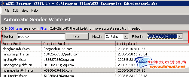 然而,很多有兴趣的朋友很想知道这里面记录也哪一些记录?或是想把其中的一些记录进行删除。因为这些需求自动发件人白名单查看工具(Auto Sender Whitelist Browser Tool)发布了。今天我们来介绍--自动发件人白名单查看工具(Auto Sender Whitelist Browser Tool)的用法。