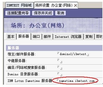配置Domino Server的即时通讯服务器,在主服务器(Domino服务器)场所中设置“IBM Lotus Sametime 服务器”域为“sametime.ibmtest.com”,如图23所示: