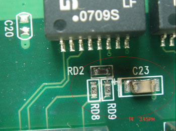 图二:湖北地区某VPN企业用户的是一个轻伤的案例,在这个情况下,能量较小,因此可能损害较小的元器件,对于较大的元器件无法伤害,因此可看到有些小元器件附近有焦黑现象。