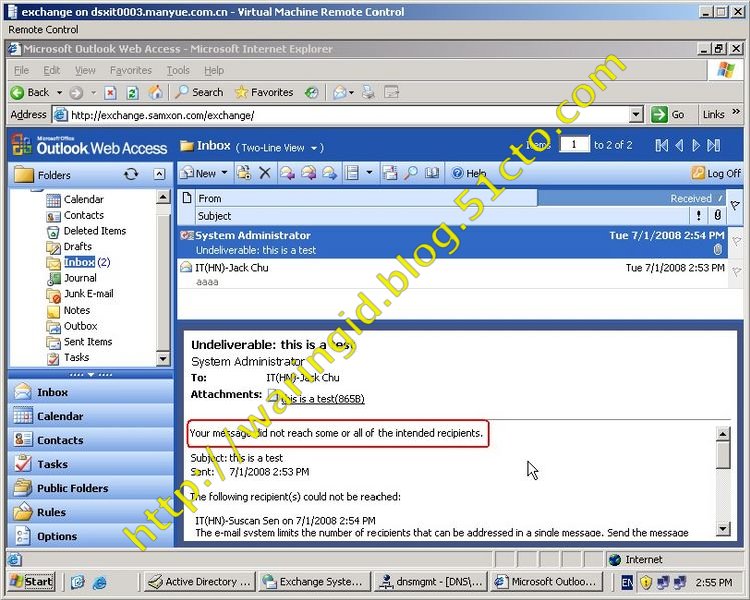 邮件服务向来是企业的核心业务.邮件的重要性对于企业来说是不言而喻的.而Exchange2003的邮件设置各选项也较多,如何根据企业内部需求正确地应用这些设置是一项长久而又复杂的事情.以前就其高可用性写了一篇集群方面的文章( http://waringid.blog.51cto.com/65148/72065),有兴趣的可以参考下.但是邮件系统不仅仅是高可用就行了,还要涉及到安全,防病毒,防垃圾邮件及特殊化的定制.所以结合个人的经验及应用体会写成这篇文章,因为水平所限,如有不当或是不完善之处,还请指正.