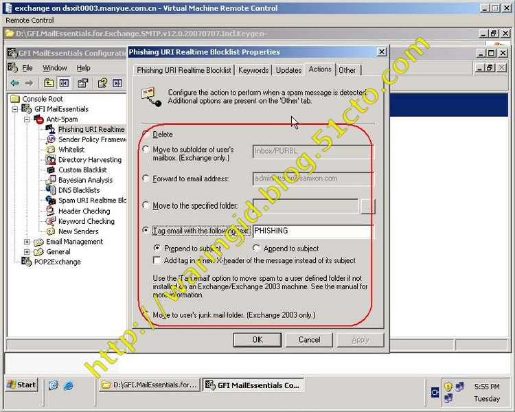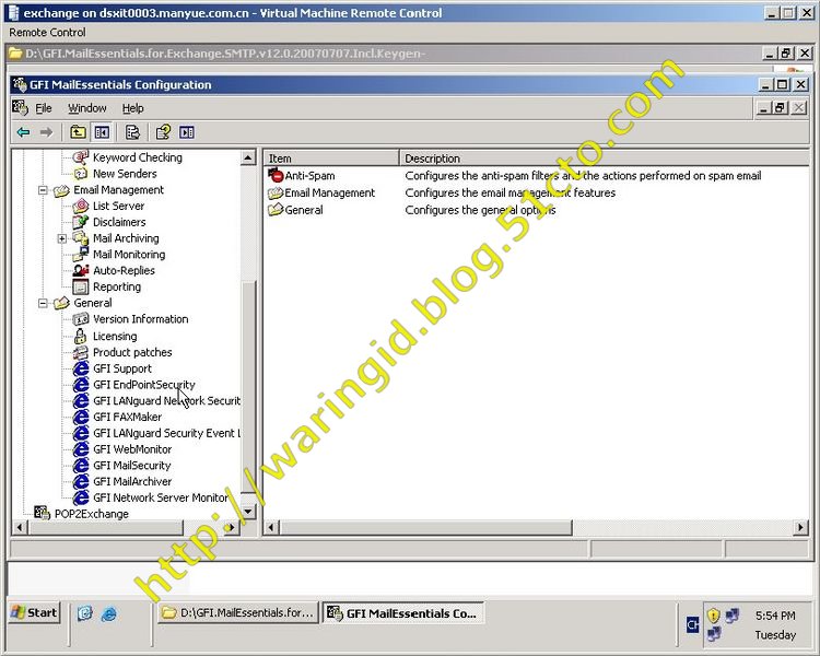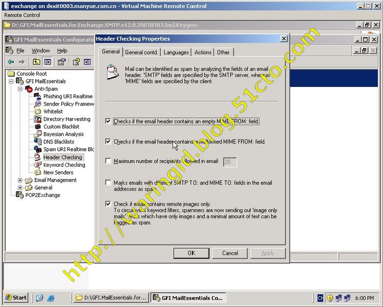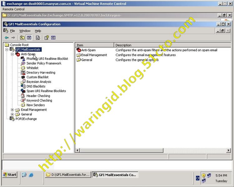 作为管理员,如何防止垃圾邮件携带恶意软件进入企业,需要付出许多的努力。而GFI公司的Mail Essential Exchange软件可帮助管理员高效的管理企业的电子邮件服务器.当然你如果觉得开源系统下的东西更好用那又另当别论.Mail Essentials可以有两种安装方式:SMTP网关模式或者直接安装在Exchange邮件服务器上。两种安装方式都有自己的优点和缺点。SMTP网关模式是把ME安装在一台独立的网关服务器上,因此运行的是独立的邮件服务器软件。网关模式允许把反垃圾邮件功能分配到一台独立的、功能比较弱的服务器上,让Exchange服务器专注于运行Exchange。