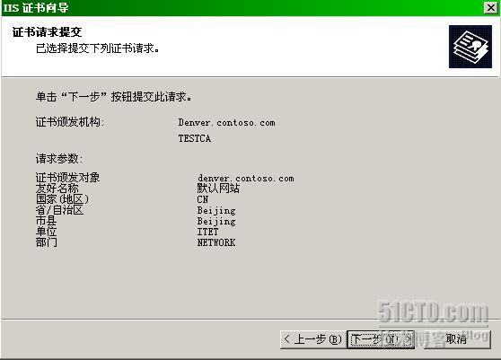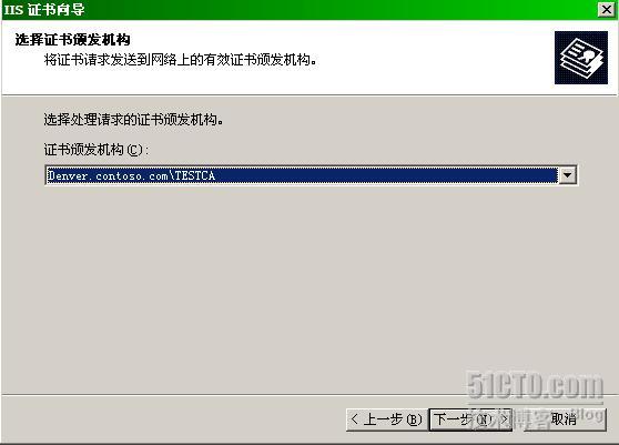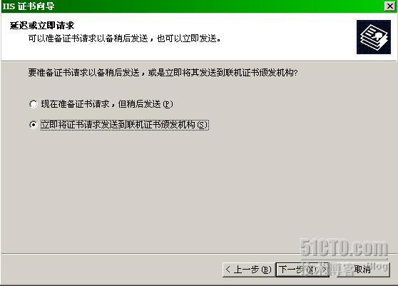 由于Denver上的证书服务器是企业根,支持在线颁发证书,因此我们选择“立即把证书请求发送到联机证书颁发机构”。