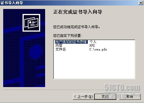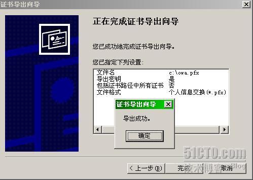 如下图所示,证书导出成功,接下来我们把证书文件复制到ISA服务器上,为下一步的证书导入做好准备。