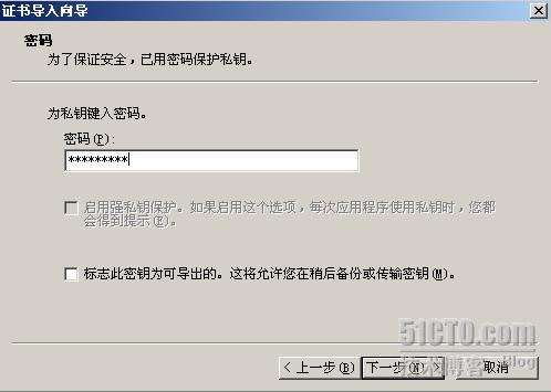 输入保护私钥的密码,导入证书时必须回答出此密码才能导入私钥。