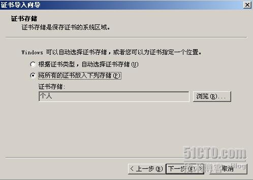 将证书存储在个人区域。