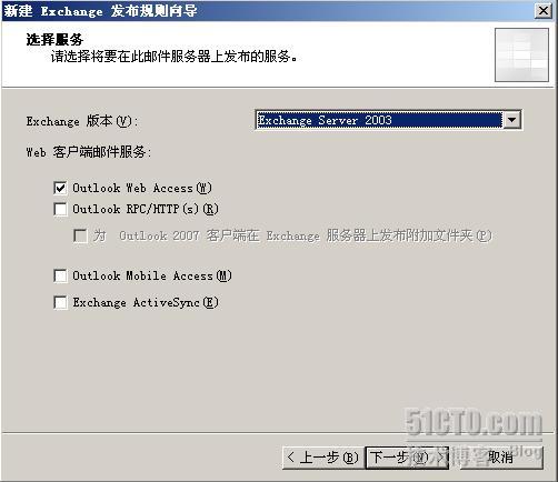 选择Exchange版本为Exchange 2003,客户端的访问方式是Outlook Web Access。