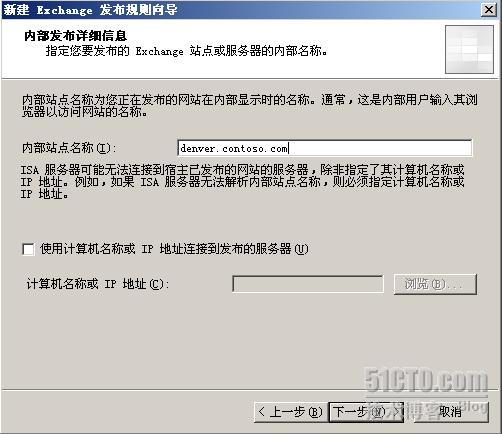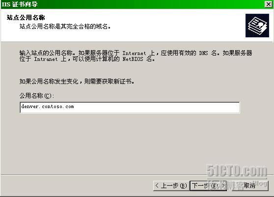 内部站点名称为denver.contoso.com,注意,这个名称应该和证书的公用名称保持一致。