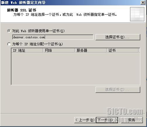 在侦听器中选择使用导入的denver.contoso.com证书。
