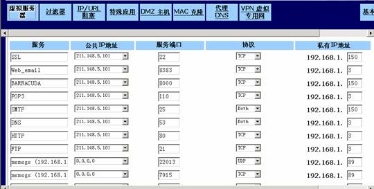 下图是“端口转发”安装模式中将smtp指向梭子鱼梭子鱼的事例:邮件服务器的ip是192.168.1.3,梭子鱼的ip是192.168.1.150,原来的211.148.5.101的smtp是映射到邮件服务器上的,梭子鱼架设后,在防火墙上将211.148.5.101的smtp改为映射到梭子鱼上。
