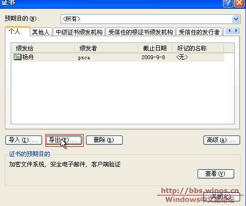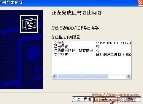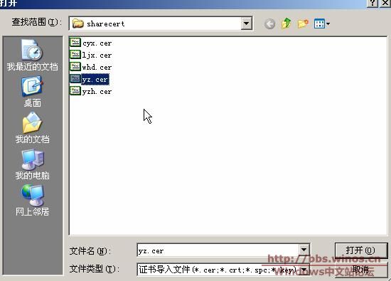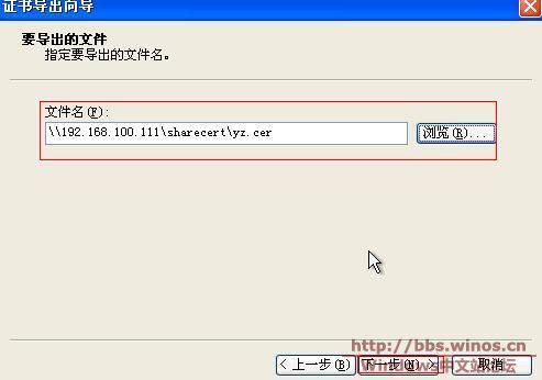 我把yz.cer导出到了exchange1服务器的一个共享文件夹内