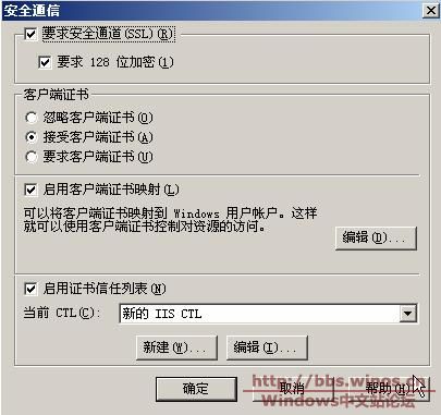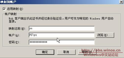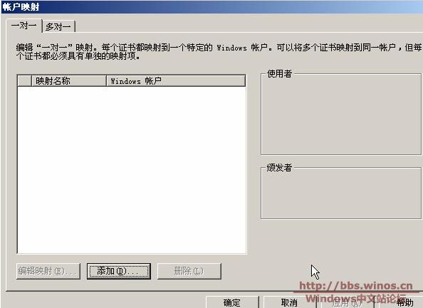 点击启用客户端证书映射按钮,点“编辑”打开帐户映射对话框