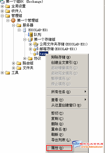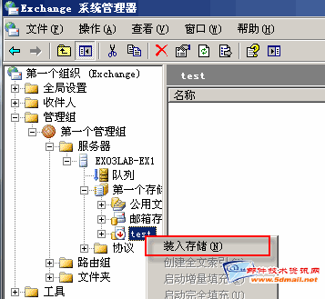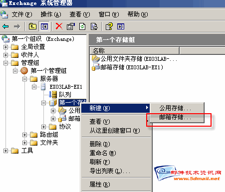 1. 新建一个邮箱存储数据库(如果是Exchange 2000/2003标准版则不需)