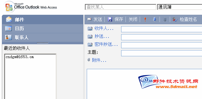 不过在OWA基本客户端中,自动完成功能是以最件收件人的方式在新建邮件时的左边提现出来供用户选择的不知道这算不算是自动完成的功能范围?!如下图: