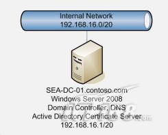 我们使用一台名称为SEA-DC-01的服务器,它是域控制器、DNS服务器,接着我们将演示如何安装活动目录证书服务角色。如图1所示: