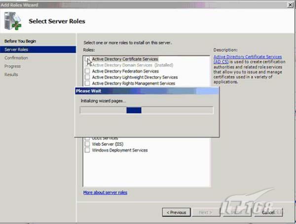 我们将选择活动目录证书服务,如图2所示。我们的向导将显示个性化的步骤根据我们要增加的角色。