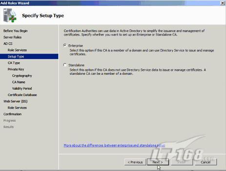 CA能够被安装为企业或独立服务器。它们之间的区别是目录服务是否用于简化管理、发布或证书管理。如图4所示。