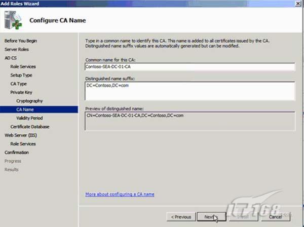 我们为该CA使用缺省名称。如图8所示。