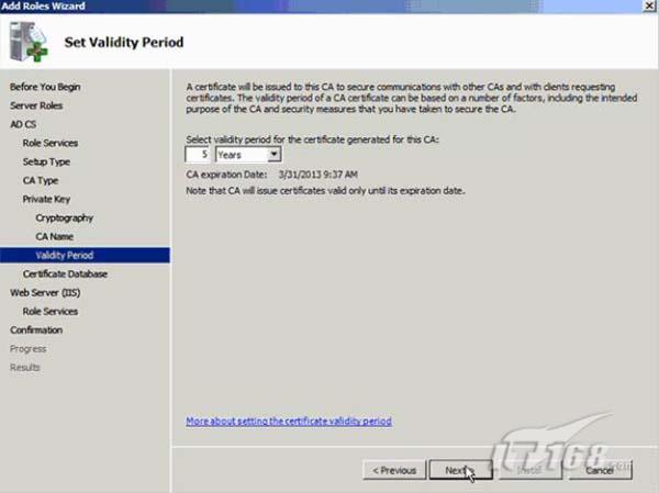 每个证书都有一个有效期。在有效期结束以后,证书将不在被认为是可接受或可用的凭据。您可以通过使用您以前使用过的相同密钥或使用一个新密钥集来更新该证书。我们为该设置使用缺省值。如图9所示。